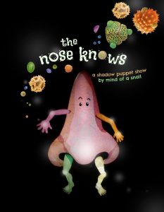 Journey with Mind of a Snail to unseen microscopic worlds inside the body. “The Nose Knows,” is a hilarious, imaginative, and musical shadow puppet show for all ages! Watch as Professor Onomatopoeia and Clovis use their “zoom machine” (overhead projectors) to look into how the nose works and to find out why it’s running! Listen to the hit single from the show “What is Dust?”
